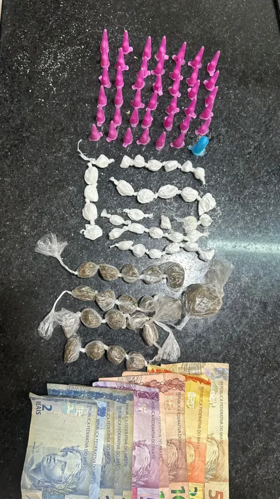 Com o indivíduo foram encontradas 31 trouxinhas de maconha, 73 porções de cocaína e dinheiro.