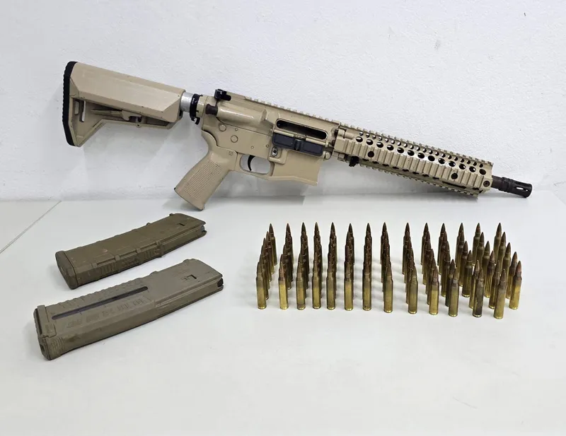 Na busca veicular, os policiais encontraram no porta-malas um fuzil Colt modelo M4 Carbine calibre 5.56, dois carregadores e 83 munições do mesmo calibre.