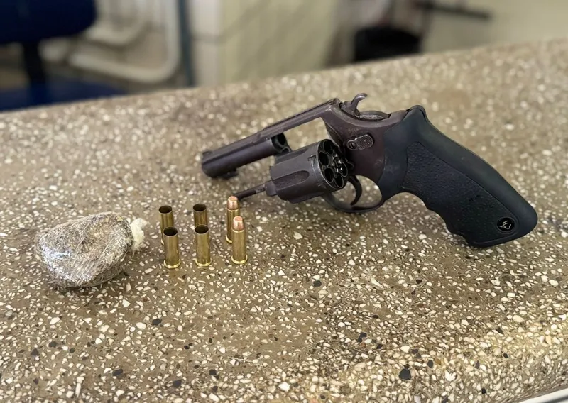 Após o confronto, o indivíduo foi alcançado e detido em posse de um revólver calibre .38, municiado, além de uma porção de maconha.