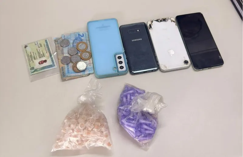 Após as buscas, foram apreendidos 16 munições calibre 9mm, 116 pedras de crack, 105 porções de maconha e quatro celulares.