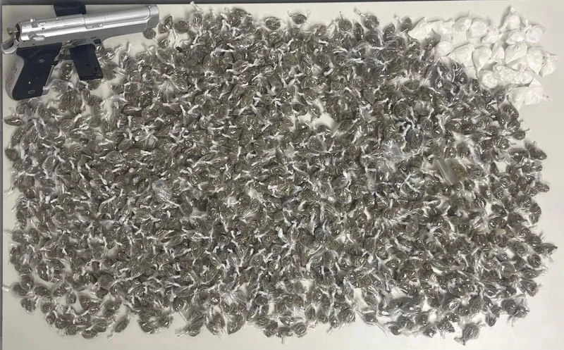 Com ele, foram apreendidas 961 porções de maconha, 21 embalagens contendo cocaína e uma réplica de pistola.