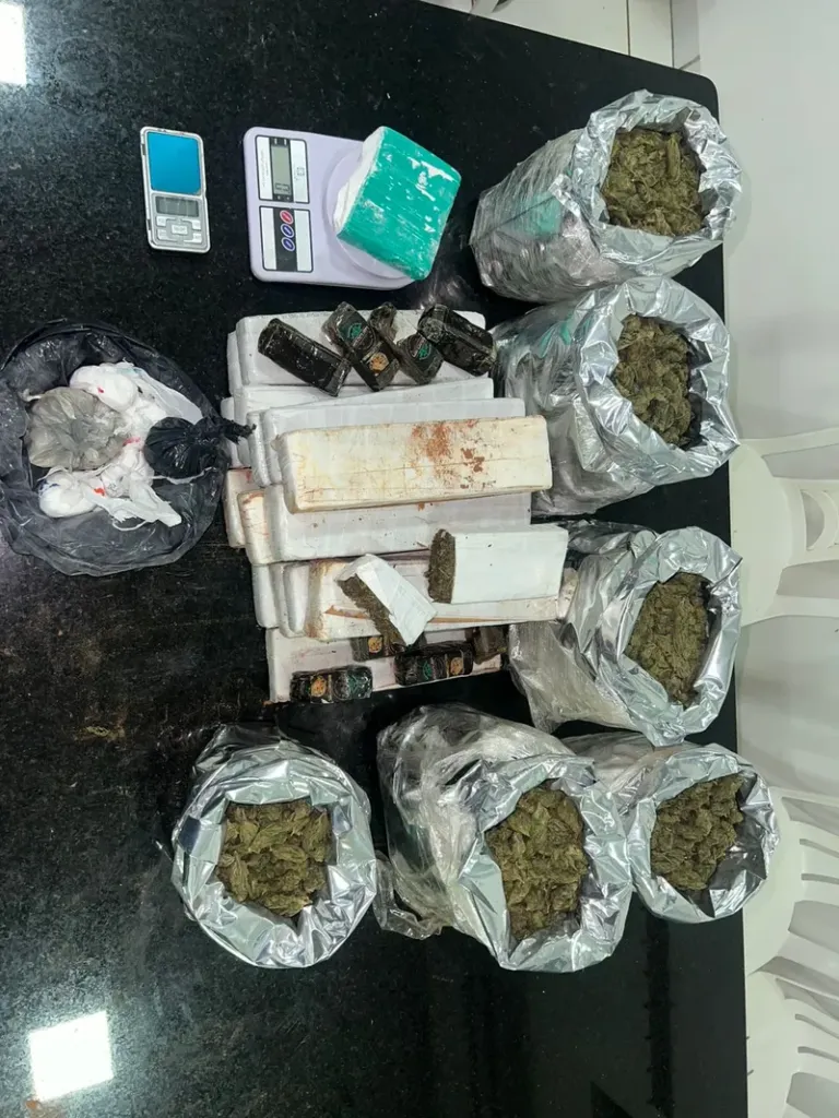 Ao abordar o veículo suspeito na Rua Ibipitanga, a guarnição encontrou no seu interior uma caixa contendo maconha tipo “skank”, maconha prensada, haxixe e cocaína. O motorista confessou ter acabado de entregar entorpecentes em uma residência próxima. Diante da confissão, a equipe retornou ao local da entrega, onde era perceptível um forte odor de maconha. Na residência, os policiais flagraram um segundo homem no quintal, que tentava enterrar mais drogas. Após a voz de abordagem, foi encontrado material adicional, incluindo maconha prensada. A rápida resposta dos militares impediu que a droga fosse ocultada e possibilitou a prisão do segundo envolvido na rede de distribuição.