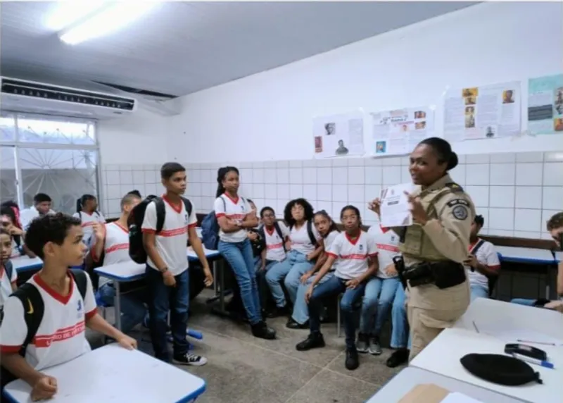 Na tarde de sexta-feira (7), policiais militares da 52ª Companhia Independente de Policia Militar (CIPM) concluíram mais uma ação educativa na Escola Municipal Ana Lúcia Magalhães, no centro de Lauro de Freitas, com as turmas do 6° e 7° ano do ensino fundamental.