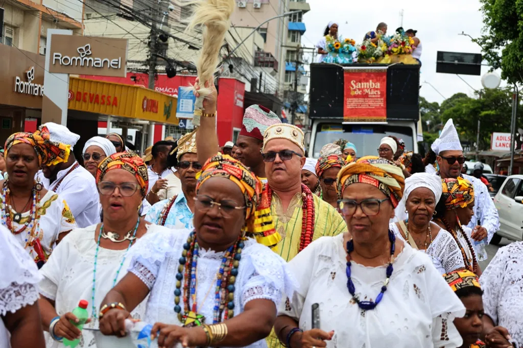 Depois, sob cânticos e ao som ritual dos atabaques e outros instrumentos usados nestas celebrações, com seus coloridos e belos trajes de festa, caminharam pela avenida Getúlio Vargas. A manifestação teve o apoio da Prefeitura de Feira de Santana.