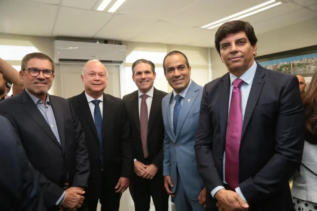 O prefeito de Salvador, Bruno Reis, participou nesta segunda-feira (9) da sessão solene do Tribunal de Contas dos Municípios (TCM), no Centro Administrativo da Bahia (CAB), para a entrega da Medalha de Mérito Deputado Luís Eduardo Magalhães ao presidente da Câmara dos Deputados, Hugo Motta, e ao ex-governador do estado César Borges.