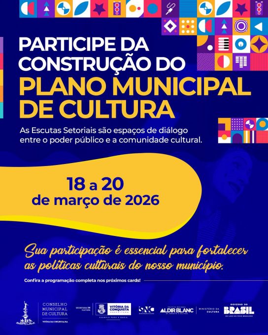 A ação tem como objetivo assegurar a participação popular e democrática, garantindo que o Plano contemple as reais necessidades e particularidades do conquistense, como destaca Alecxandre Magno, assessor especial de Cultura: “Reforçamos a importância da participação da comunidade nesse processo coletivo de construção do nosso Plano Municipal de Cultura, uma política cultural do município de Vitória da Conquista”.