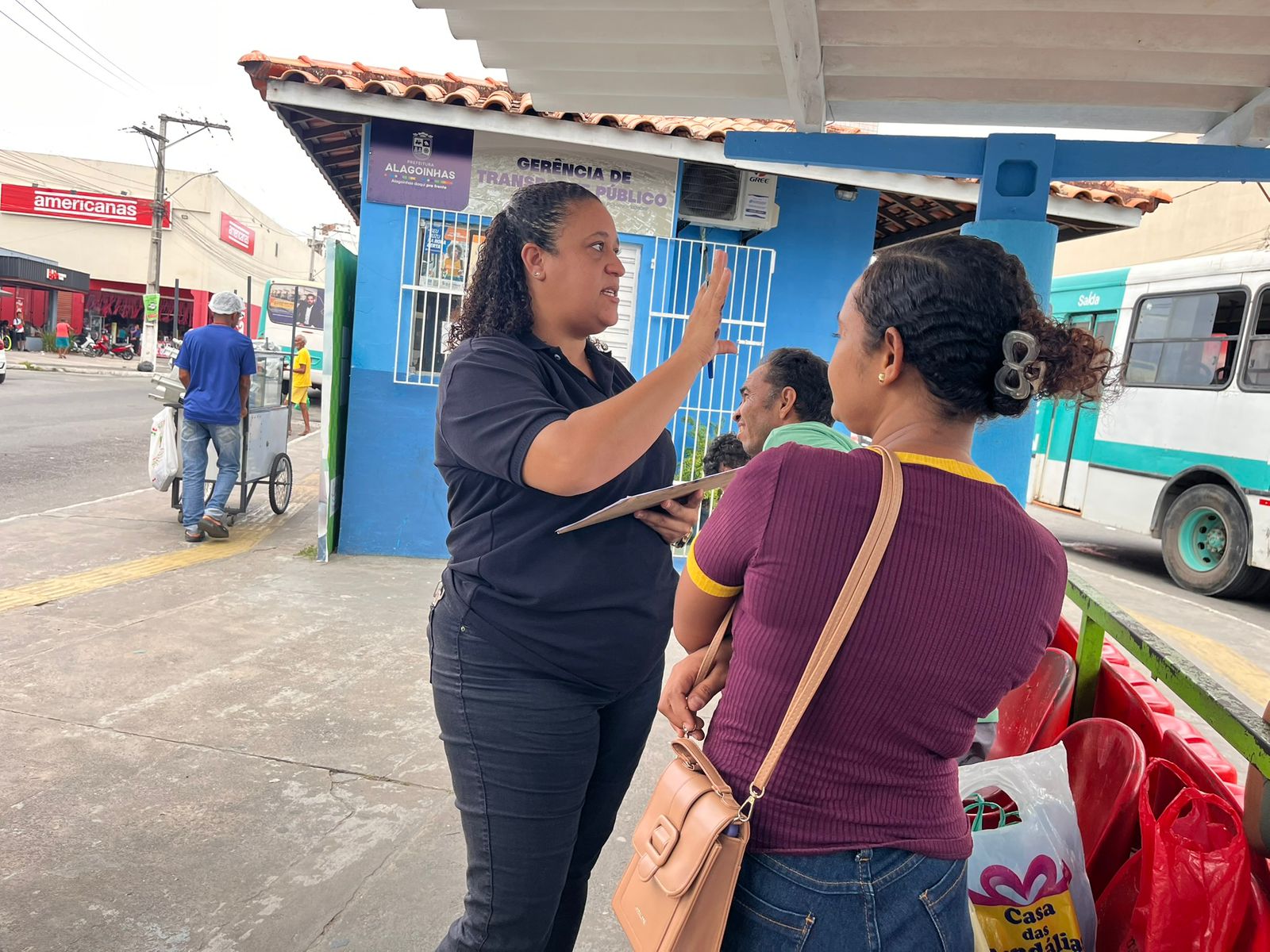 Usando o transporte público diariamente, a moradora do bairro Miguel Velho, Rosaria dos Santos, enfatizou a importância de as equipes da prefeitura estarem no Centro da cidade ouvindo a população. “É importante porque a gente não tem vez, não tem voz. Eu mesma nunca tinha sido escutada. É a primeira vez que alguém me pergunta sobre o transporte público. A gente espera que melhore, que essas informações realmente sejam levadas em consideração”, apontou.