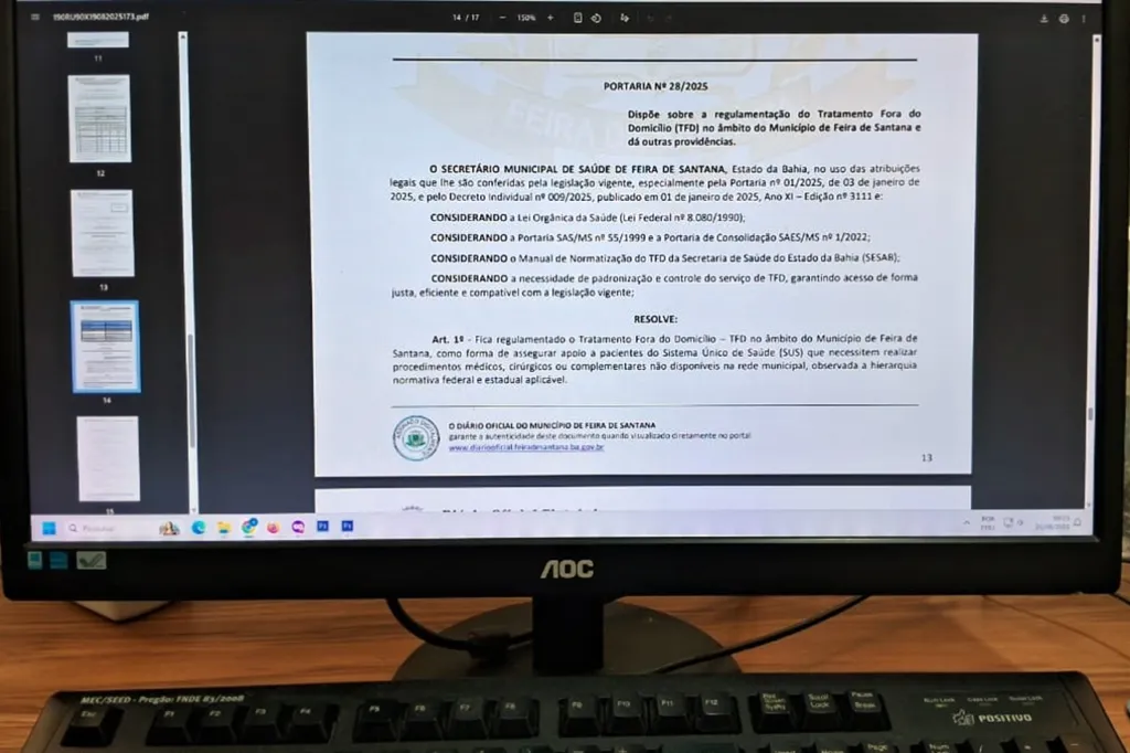 “Essa portaria foi publicada para regulamentar o TFD, dar transparência e também orientar as pessoas sobre a finalidade deste serviço. Queremos garantir acesso qualificado ao serviço, com eficiência e de acordo com as normativas federais vigentes. É voltado para pacientes que já possuem exames ou procedimentos de alta complexidade agendados em outro município pactuado, que não estão disponíveis em Feira ou cuja demanda excede a oferta local”, ressalta o secretário municipal de Saúde, Rodrigo Matos.