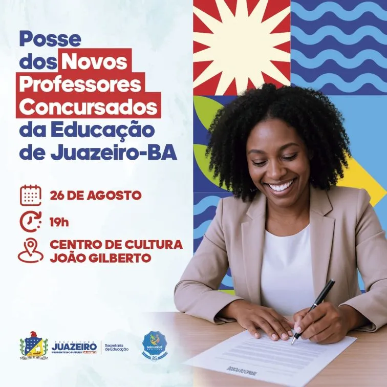 A Prefeitura de Juazeiro, por meio da Secretaria de Educação/Seduc, realizará, nesta terça-feira (26), a solenidade de posse dos novos professores concursados que irão atuar na rede municipal de ensino. O evento acontecerá às 19h, no Centro de Cultura João Gilberto.