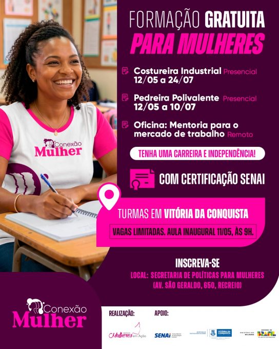 🔗 Clique para ver a foto originalA partir desta quarta-feira (15), a Prefeitura de Vitória da Conquista, em parceria com o Senai, está com inscrições abertas para os cursos gratuitos de Pedreira Polivalente e Costureira Industrial, exclusivos para mulheres. Com 30 vagas por turma, a ação busca ampliar oportunidades de qualificação profissional e a  inserção no mercado de trabalho.