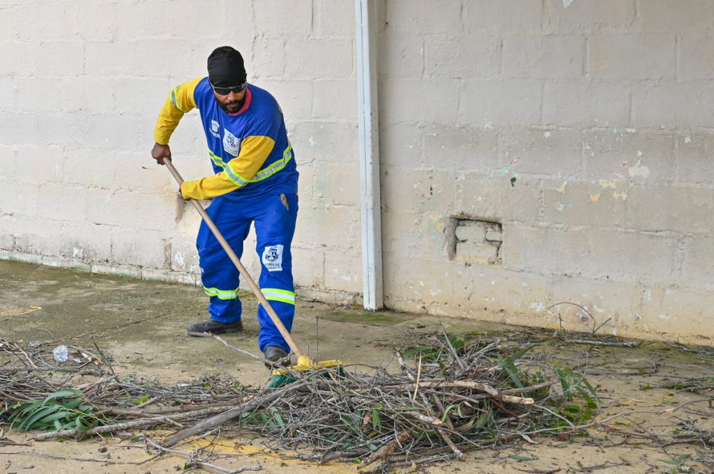 Logo no início do dia, servidores da Secretaria Municipal de Serviços Públicos (Sesep) realizaram a limpeza do canal do loteamento Santa Cecília, que chegou a transbordar por conta das fortes chuvas, mas logo teve a situação normalizada. As equipes também estiveram no Estádio Municipal Lomanto Júnior, para a retirada de galhos de árvores que caíram no estacionamento, na Avenida Joaquim Hortélio, onde uma árvore de pequeno porte caiu, além de limpeza nas avenidas Genésio Porto e João Pessoa.