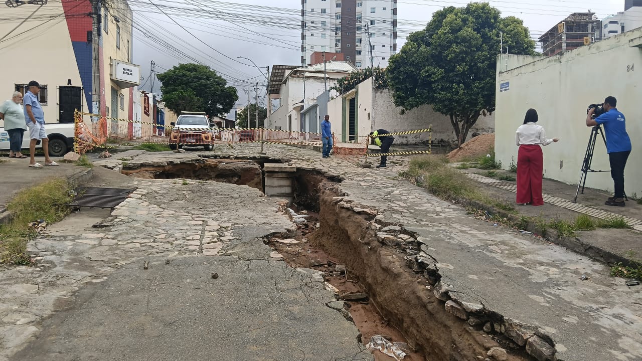 Na manhã desta terça-feira (20), as equipes da Defesa Civil, Sesep e Seinfra se mobilizaram para avaliar os estragos e realizar os reparos necessários. O bairro Recreio, onde está localizada a Rua Lourival Cairo, foi o que registrou maior volume pluviométrico, com aproximadamente 28 mm em curto período. Com a enxurrada forte e a intervenção realizada pela Embasa, uma cratera se formou num trecho da via, que já estava no cronograma de pavimentação para os próximos dias.