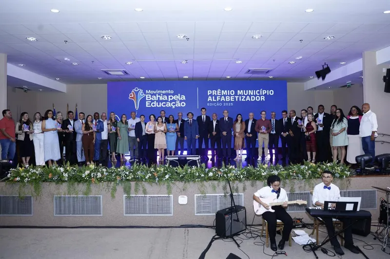 O Ministério Público do Estado da Bahia sediou ontem, dia 15, a cerimônia da primeira edição do prêmio ‘Município Alfabetizador’, que reconheceu 11 municípios baianos que se destacaram nos indicadores de alfabetização de crianças na idade certa, com base nos dados de 2024. A premiação integra a agenda do Movimento Bahia pela Educação, inciativa articulada em conjunto pelo MPBA, pela Federação das Indústrias do Estado da Bahia (FIEB), União dos Municípios da Bahia (UPB), Sesi Bahia, Secretaria Estadual de Educação, Fetrabase, Sebrae, União Nacional dos Dirigentes Municipais de Educação (Undime) e Cátedra Sérgio Henrique Ferreira (USP).