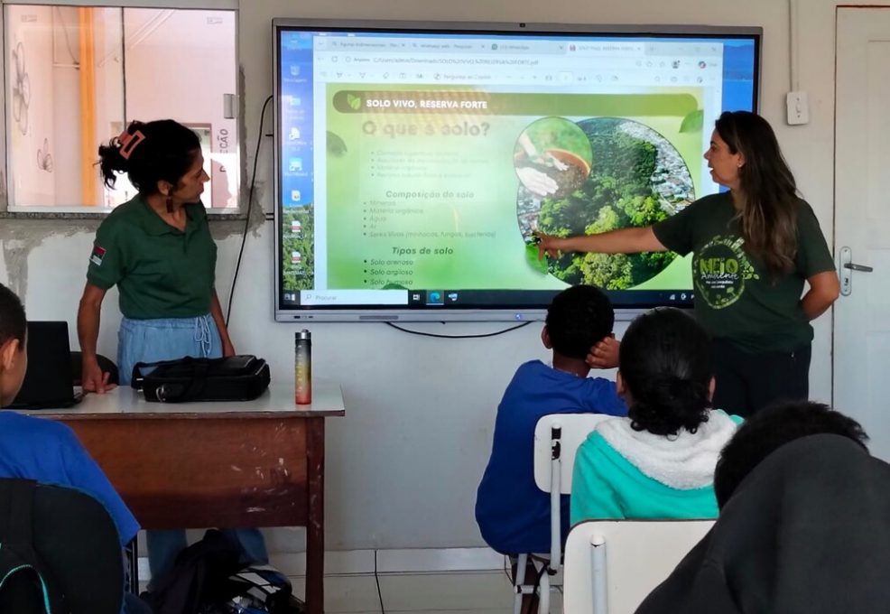A ação desta quarta destacou a relevância do solo para a manutenção da vida, da vegetação e dos recursos naturais. O projeto também abordou os impactos causados pelo descarte irregular de resíduos e o desmatamento.