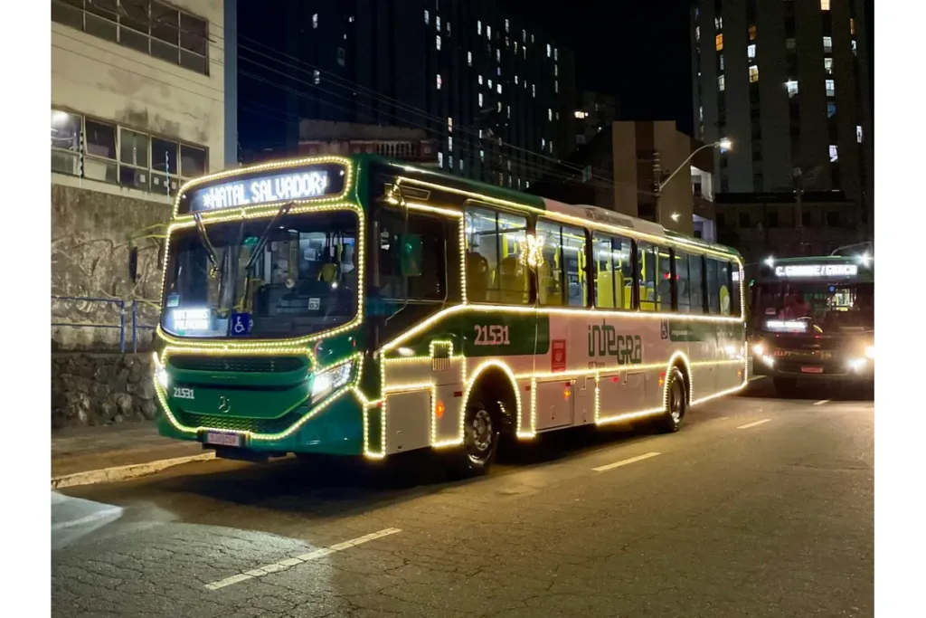 A Linha 2512 – Lapa x Natal terá a sua operação especial iniciada a partir desta sexta-feira (5) até 6 de janeiro de 2026, com veículos decorados e iluminação temática. No total, a linha contará com 35 viagens por dia e circulará sempre das 17h30 à 0h, passando pela Lapa, Tororó, Vale dos Barris, Politeama, Gamboa, Contorno, Comércio, Ladeira da Montanha, Carlos Gomes, Avenida Sete e retornando à Lapa.