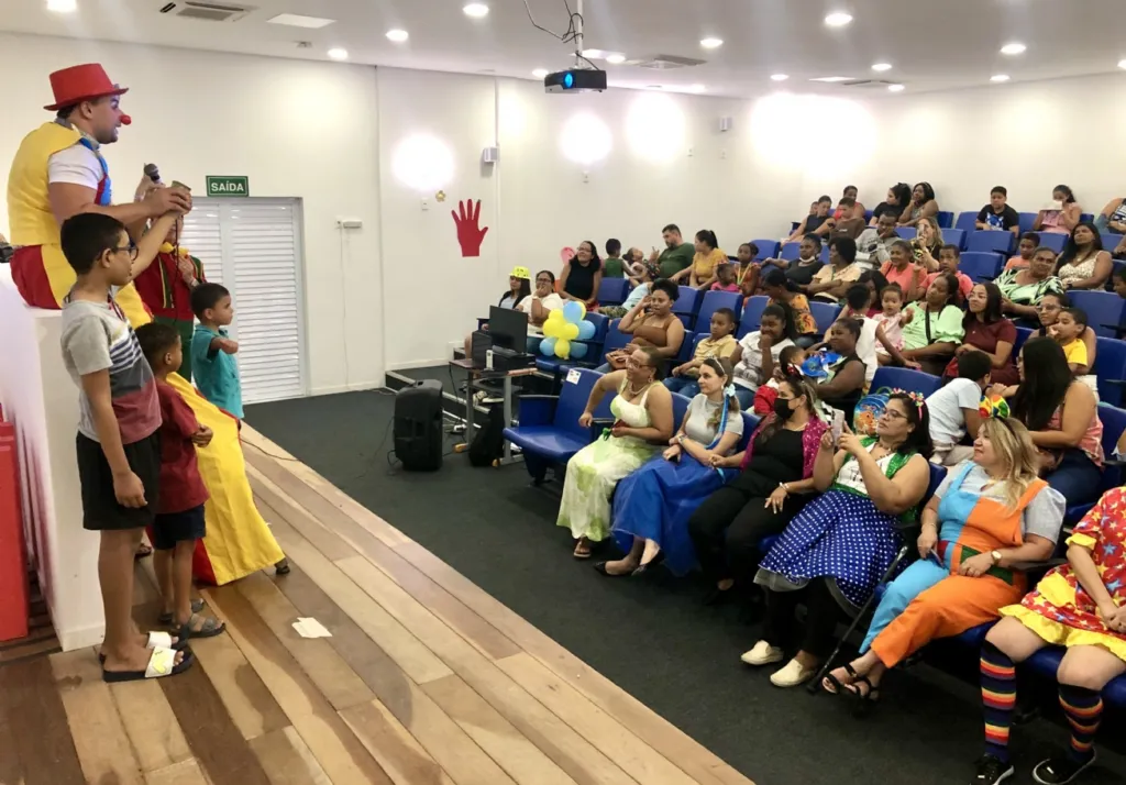 As brincadeiras tomaram conta do palco e ninguém ficou de fora! O palhaço convidou as crianças para participarem das travessuras, transformando o público em parte do espetáculo. Teve dança, teve mágica e, claro, teve muita risada compartilhada entre alunos, professores e pais que acompanhavam os pequenos durante os atendimentos educacionais.