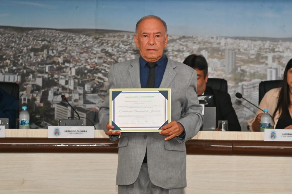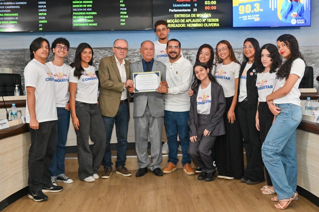 O Projeto Conquistar, desenvolvido pela Prefeitura de Vitória da Conquista, por meio da Secretaria Municipal de Desenvolvimento Econômico (SMDE), foi homenageado na manhã desta quarta-feira (4) com uma moção de aplauso proposta pelo vereador Hermínio Oliveira. A entrega aconteceu durante a sessão da Câmara Municipal, e contou com a presença do secretário de Desenvolvimento Econômico, Marcos Ferreira, do coordenador da Juventude, Luís Cardoso, e de 10 jovens participantes do programa que foram aprovados no último Exame Nacional do Ensino Médio (Enem).