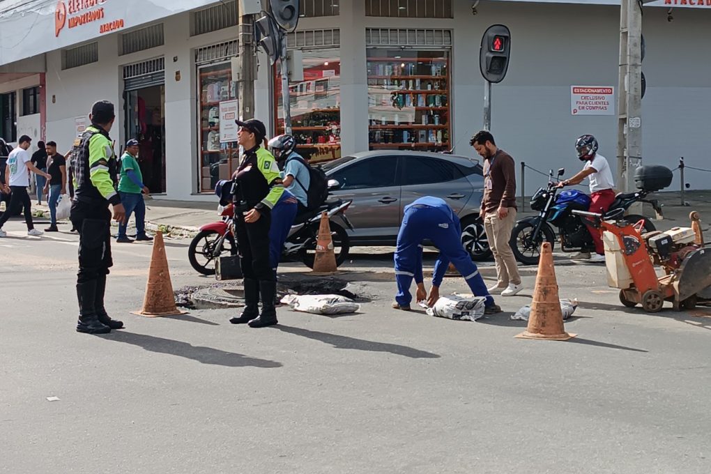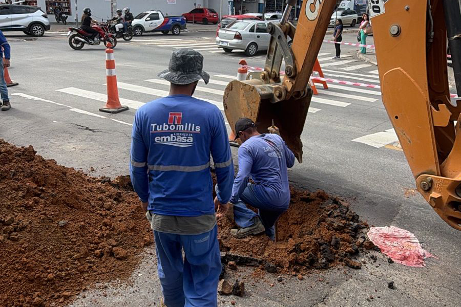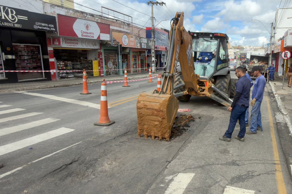 A Secretaria Municipal de Infraestrutura Urbana (Seinfra), de Vitória da Conquista, está acompanhando os serviços de reparo no cruzamento das avenidas Régis Pacheco e Crescêncio Silveira, onde uma cratera se abriu na via após rompimento da tubulação de esgoto da Embasa. O incidente comprometeu o tráfego em um dos pontos mais movimentados da cidade, exigindo intervenção imediata e sinalização das equipes técnicas.