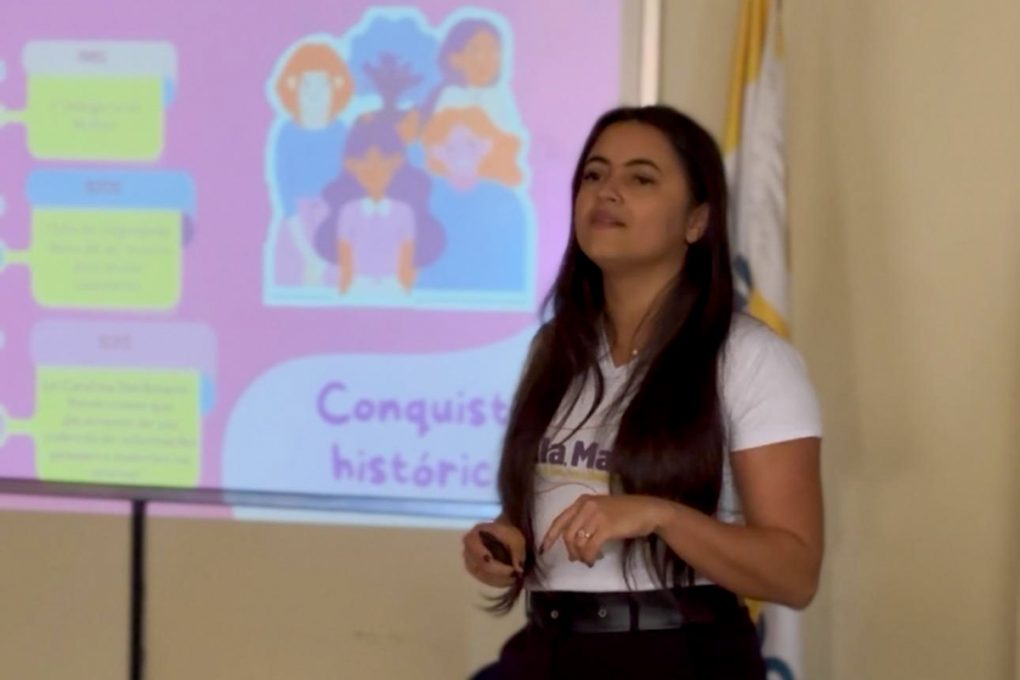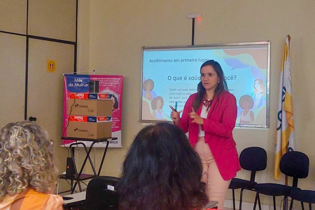 A coordenadora de Enfrentamento à Violência contra a Mulher, Monique Cajaíba, apresentou informações que auxiliam mulheres a identificarem situações de violência, a importância de buscar ajuda e de cuidar da saúde emocional. Segundo Monique, é necessário que espaços privados também se comprometam com essa pauta. “O objetivo é ampliar o alcance das ações, acolher mulheres em diferentes contextos e contribuir para uma sociedade mais consciente e responsável no enfrentamento à violência”, disse.