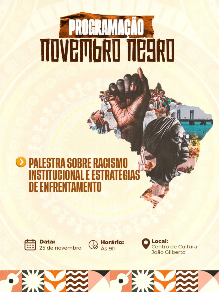 A Prefeitura de Juazeiro, por meio da Secretaria de Desenvolvimento Social, Diversidade, Igualdade Racial e Combate à Fome/SEDES, convida para a Capacitação Novembro Negro: Formação de Enfrentamento ao Racismo Institucional, realizada em alusão ao Novembro Negro.