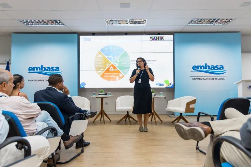 A Empresa Baiana de Águas e Saneamento (Embasa) realizou na última terça-feira (24), no Parque Deputado Paulo Jackson, no bairro do Rio Vermelho, um evento em celebração ao Dia Mundial da Água. Com o tema “Água, ESG e Função Social: integrar pessoas, território e governança para garantir segurança hídrica e sustentabilidade”, o encontro reuniu parceiros e colaboradores presencialmente e com transmissão ao vivo, promovendo reflexões sobre o papel da água como bem público essencial e os desafios relacionados à sustentabilidade no saneamento.