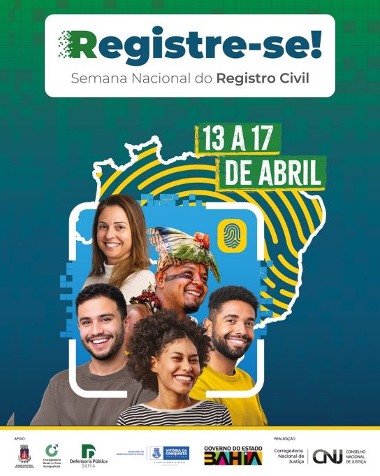 A 4ª Semana Nacional do Registro Civil – Registre-se! começa na próxima segunda-feira (13). Durante a semana, serão emitidas certidões de nascimento, casamento e óbito gratuitamente para pessoas de baixa renda que não tenham condições de arcar com os custos da documentação. A ação acontece no Centro Cultural Glauber Rocha, das 8h às 13h30, com distribuição de 60 senhas por dia.