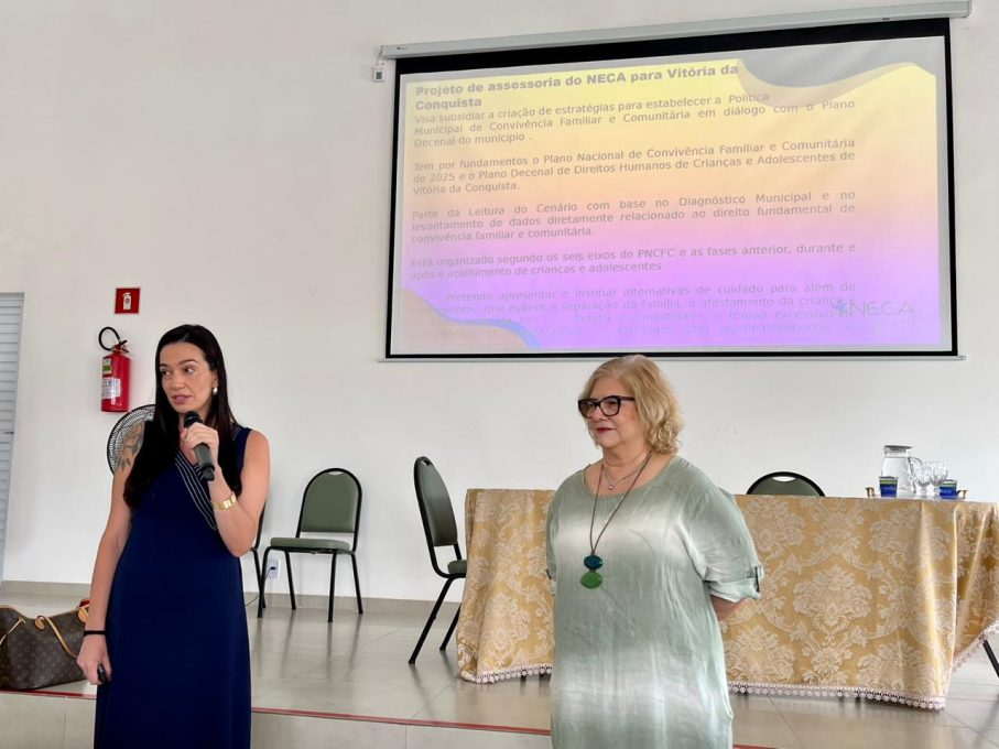 Para subsidiar a construção da estratégia, Vitória da Conquista passa a contar com consultoria técnica da Associação de Pesquisadores e Formadores da Área da Criança e do Adolescente (Neca), referência nacional na temática. O acompanhamento técnico visa garantir que a estratégia municipal esteja alinhada às diretrizes do Plano Nacional de Convivência Familiar e Comunitária, considerando a realidade local e a atuação dos serviços que atendem crianças, adolescentes e famílias.