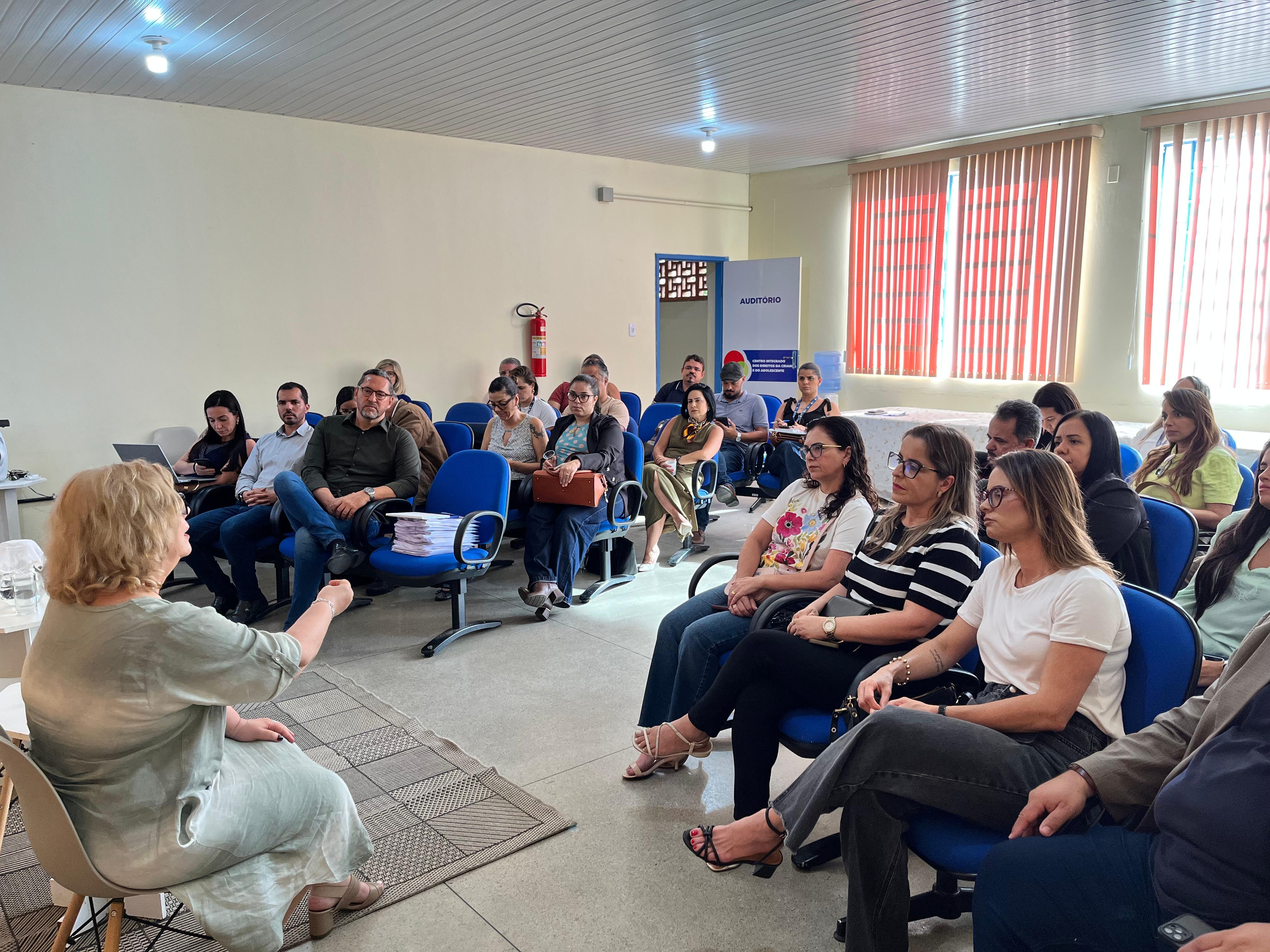 No período da tarde, no Centro Integrado dos Direitos da Criança e do Adolescente (Cidca), aconteceu um encontro formativo com a participação dos secretários municipais de Desenvolvimento Social, Saúde, Educação, Esportes, Políticas para Mulheres e Segurança Pública e Defesa Social, além das equipes técnicas dessas pastas. O momento reforçou o caráter intersetorial da estratégia, destacando que a garantia do direito à convivência familiar e comunitária exige a atuação articulada de diferentes políticas públicas.