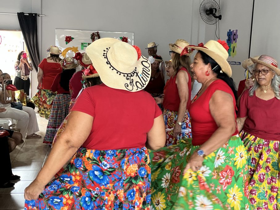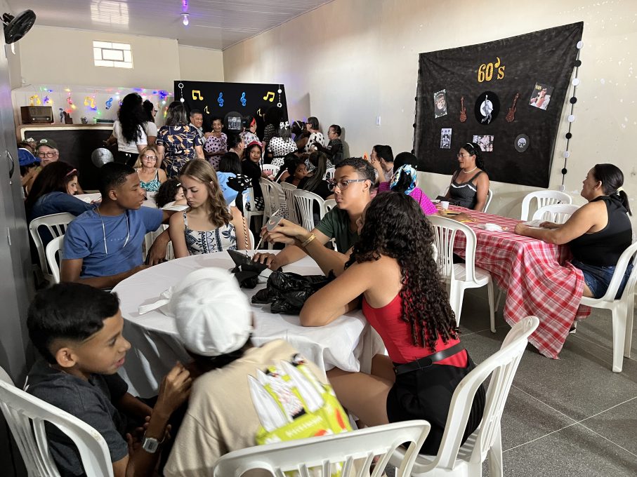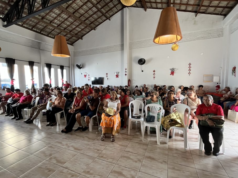 As atividades tiveram início no Cras Nossa Senhora Aparecida, que reuniu trabalhadores da unidade e cerca de 45 usuários do grupo intergeracional do Serviço de Convivência e Fortalecimento de Vínculos (SCFV). O encontro foi marcado por um almoço temático inspirado nos anos 1960, com decoração e músicas da época, além de momentos de escuta e troca entre os participantes.