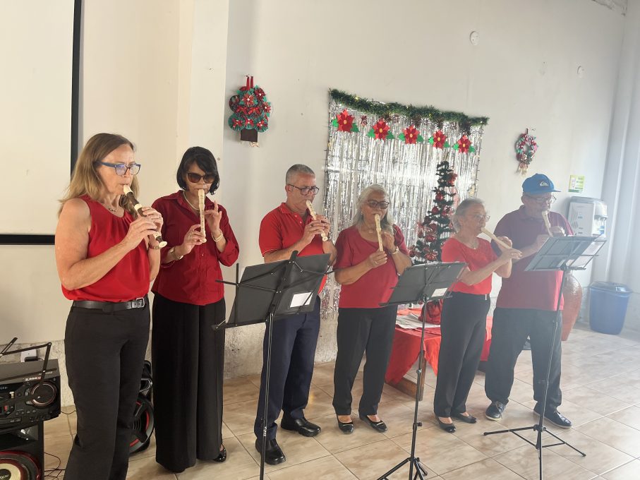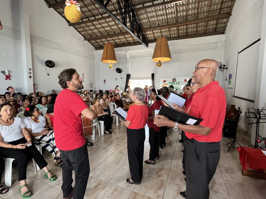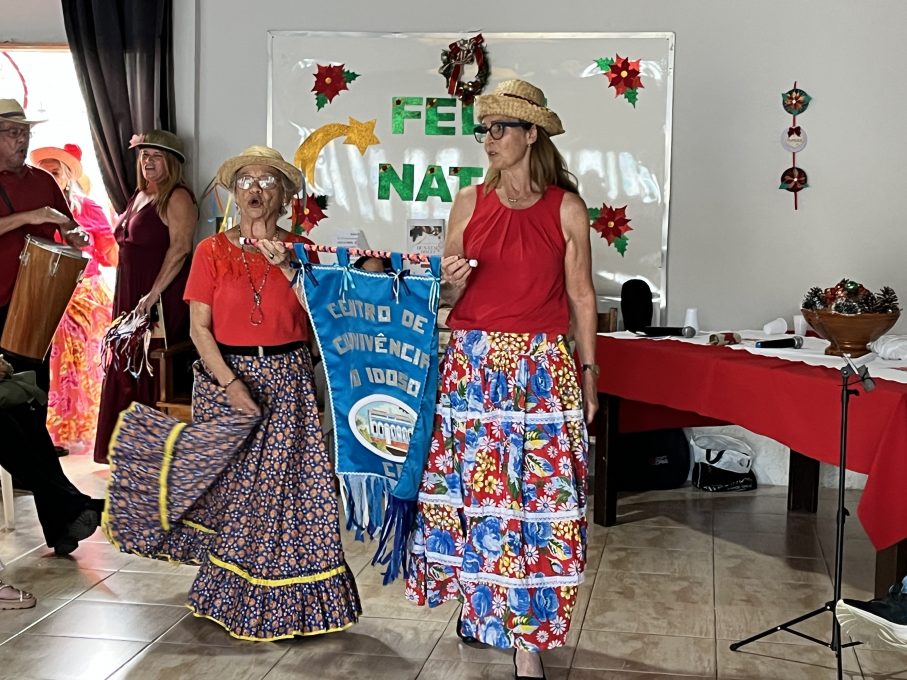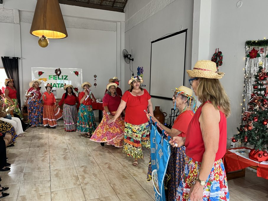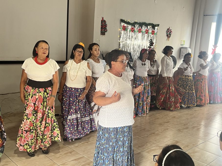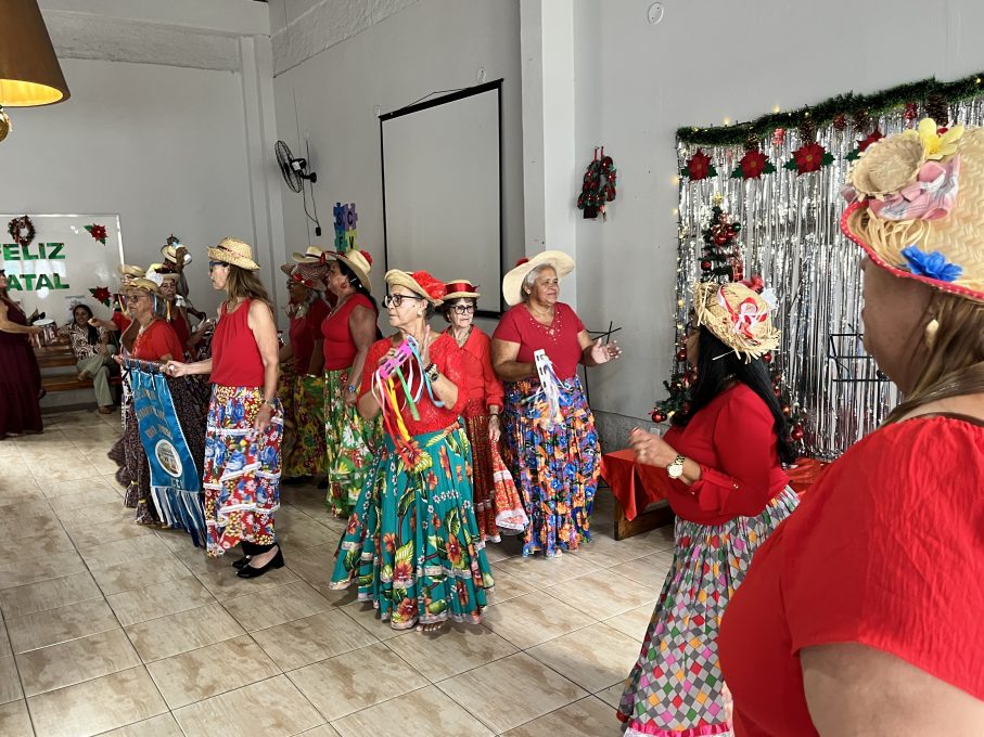 O clima de celebração também marcou o Natal no Centro de Convivência do Idoso (CCI), que reuniu cerca de 115 participantes. A programação contou com apresentações de teatro, coral, flauta e dança, proporcionando momentos de alegria, integração e valorização do envelhecimento ativo.