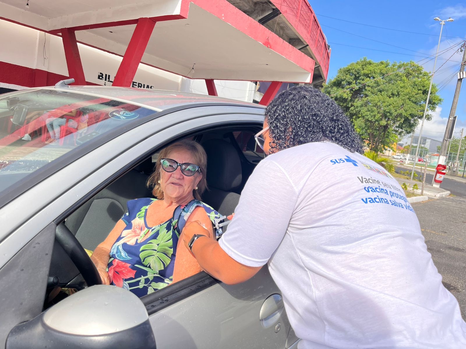 O aposentado Sr. Aliomar Lima, 64, é um exemplo de cuidado com a saúde. Aguardando para ser imunizado contra influenza no drive-thru montado na área externa do estádio Carneirão, ele conta que sempre aproveita campanhas para se prevenir contra doenças. “A vacinação é uma das etapas complementares de cuidado que temos que ter com nossa saúde. Se vacinar é tão importante quanto cuidar, por exemplo, de próstata e da visão. É um ciclo completo que precisa incluir controle de hipertensão, diabetes… se não, desanda tudo, não é verdade?”