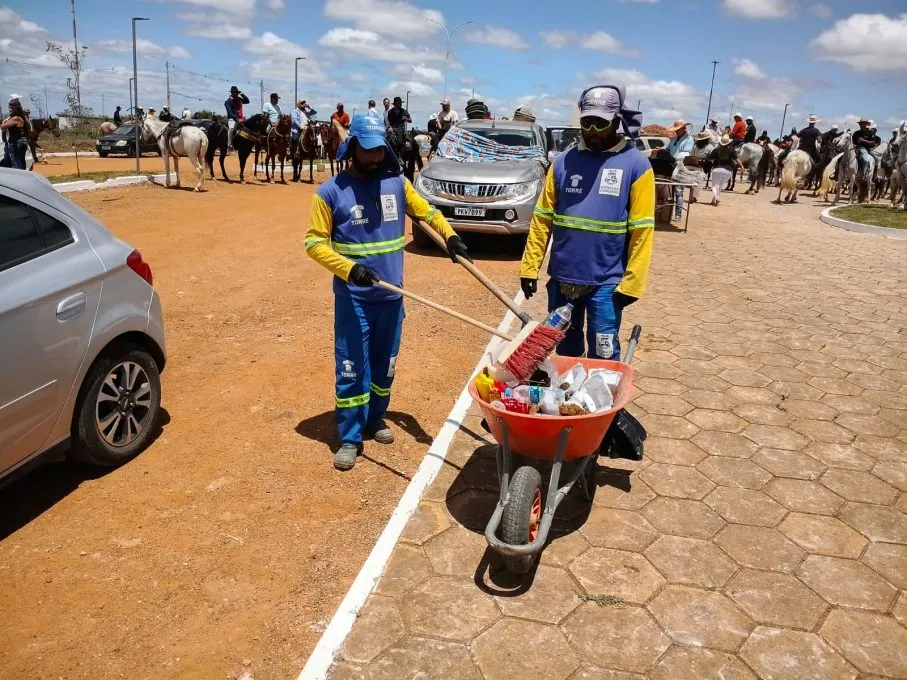 Ao final da celebração e da cavalgada, as equipes entraram em ação para limpar e retirar toda a sujeira e o lixo produzido durante o evento.