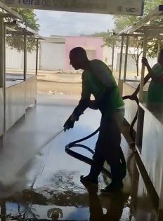 Durante todo o ano, a Prefeitura de Vitória da Conquista realiza o serviço de higienização nas sete feiras livres em funcionamento na cidade. As ações incluem varrição, lavagem dos pisos, escadarias e paredes, além da limpeza dos sanitários instalados nesses espaços.