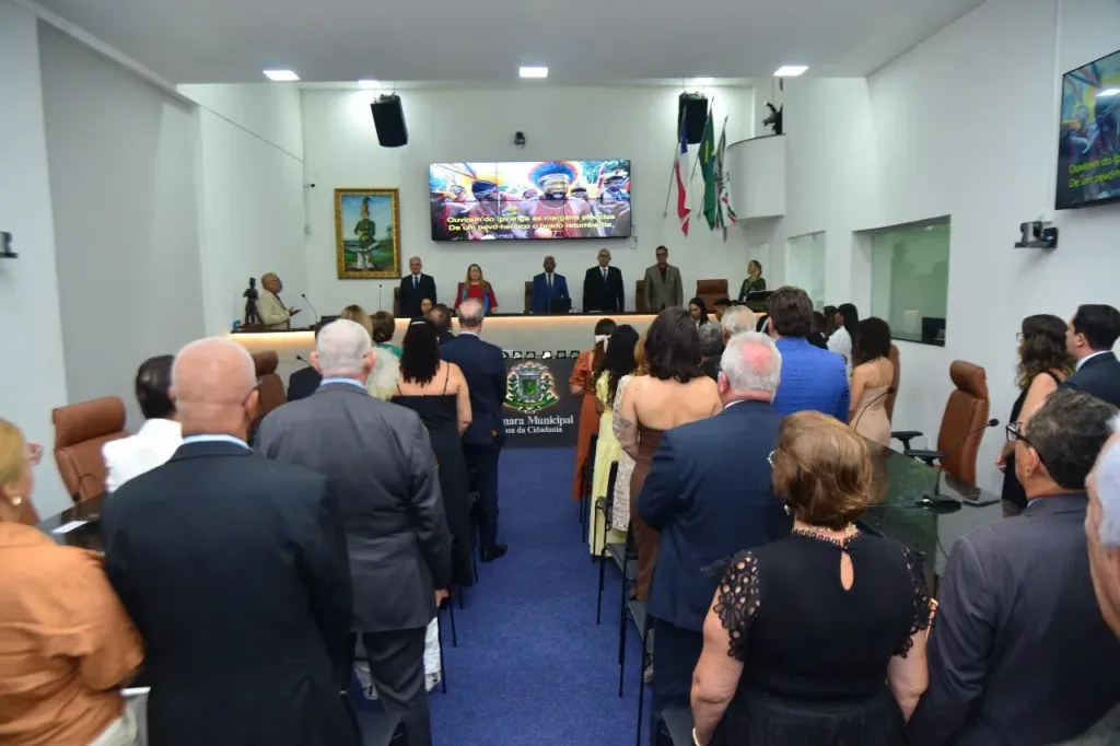 A sessão contou com a presença de Yara Maria Portugal Lima e Cruz, governadora do Distrito 4391 no Ano Rotário 2025-2026 e palestrante da noite; Luiz Antônio Macedo Cruz, vice-governador 2025-2026; Hugo da Cruz Dórea, representando o Colégio de Governadores; e Valdemir da Silva Bastos, presidente do Rotary Club Portal do Sertão, representando os demais clubes da cidade. Todos compuseram a Mesa de Honra ao lado do autor da sessão. Outras autoridades do município, de diversos segmentos, também estiveram presentes no plenário da Casa.