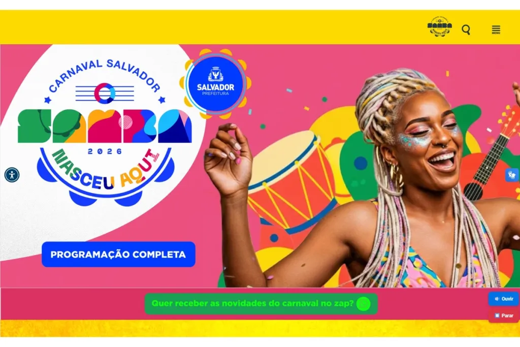 O site oficial do Carnaval de Salvador (https://carnaval.salvador.ba.gov.br/) já está atualizado com a ordem e os horários dos desfiles para a edição de 2026 da folia. A programação reúne blocos de corda, trios ‘pipoca’, blocos afro, afoxés, grupos independentes e demais entidades que participam da festa nos circuitos oficiais e alternativos da cidade.