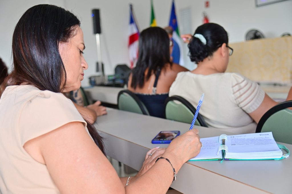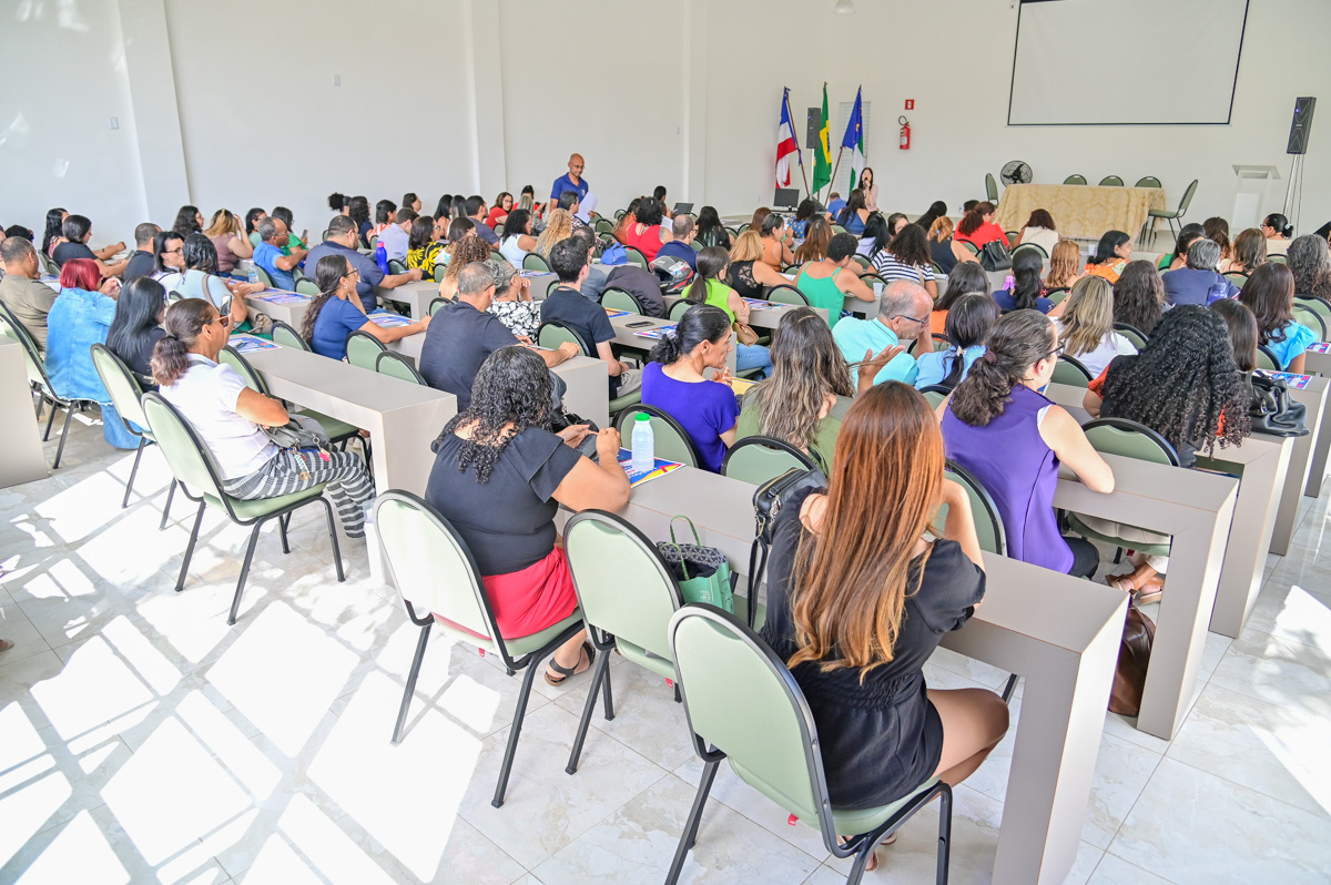 Ao todo, cerca de 110 secretários escolares participaram do encontro, que acontece em dois turnos: no período matutino, com representantes dos Cmeis e da zona rural, e no vespertino, com os secretários da zona urbana.