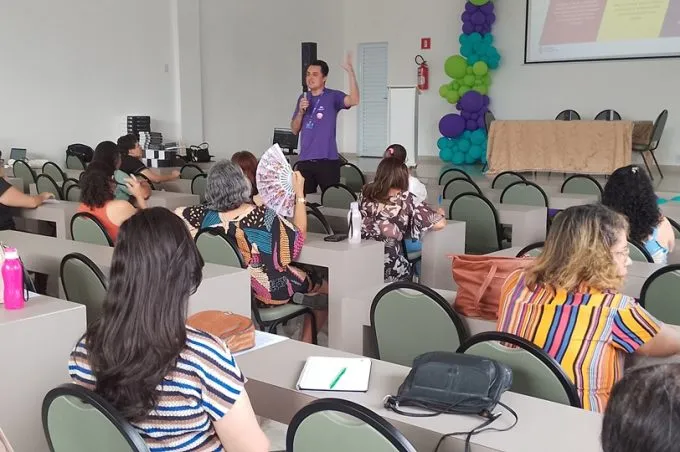 Formador de professores da Mind Lab, Thiago Lopes realizou um workshop para demonstrar o uso da metodologia do programa Mente Inovadora, que é um parceiro da Smed. “Com os professores da Educação Infantil, nós estamos explorando as aulas propriamente ditas do programa. Trabalhamos jogos de raciocínio com as crianças de quatro e cinco anos para desenvolver as competências socioemocionais, raciocínio, o respeito. Então, tem diversos campos de experiência de aprendizagem”, observou o formador.