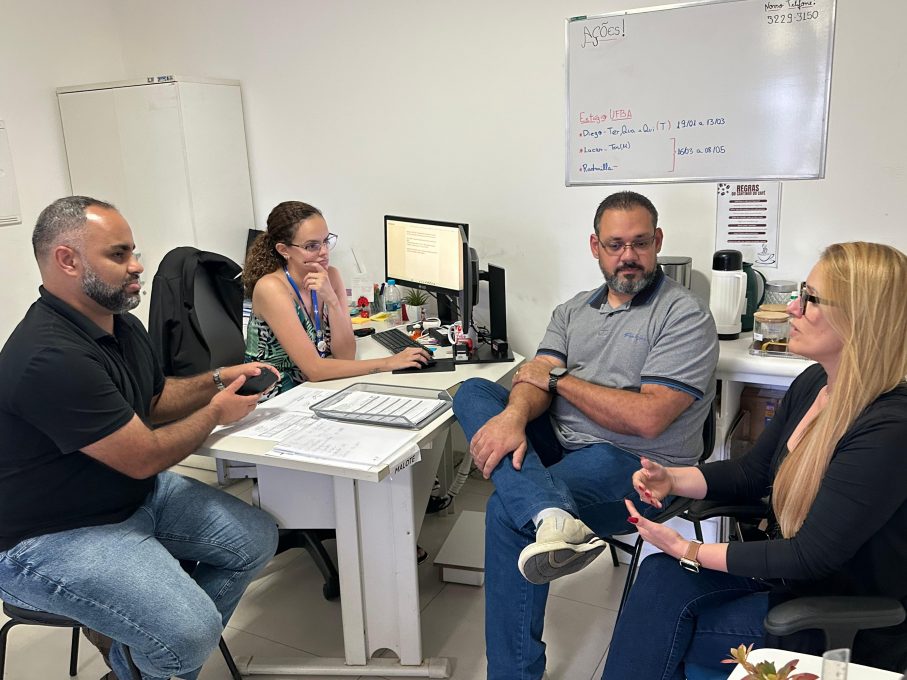 Representantes das secretarias municipais de Educação, Desenvolvimento Social e Saúde se reuniram para articular a implantação do Protocolo Brasil sem Fome em Vitória da Conquista. Participaram da reunião, o coordenador da Alimentação Escolar da Smed, Rodrigo Gigante, a coordenadora de segurança alimentar e nutricional e o coordenador de Renda e Cidadania, ambos da Semdes, Karine Barros Rodrigues e Magno Aguiar, além da coordenadora de Vigilância Alimentar e Nutricional da SMS, Iasmin Lacerda.