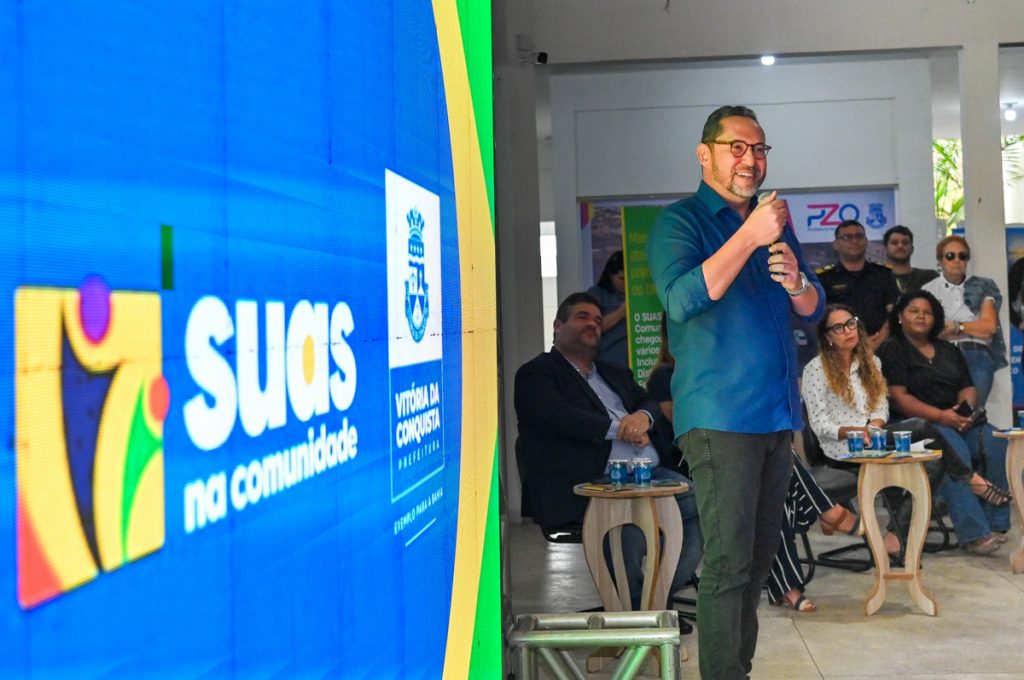 A Prefeitura de Vitória da Conquista lançou, nesta terça-feira (24), a edição 2026 do programa Suas na Comunidade. O evento foi realizado no Centro Cultural Glauber Rocha e contou com a participação de membros do Governo Municipal, trabalhadores do Sistema Único de Assistência Social (Suas), lideranças comunitárias, população em geral, representantes da Câmara de Vereadores e do Conselho Municipal de Assistência Social (CMAS).