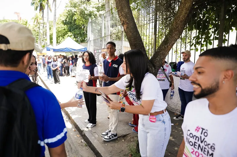 No Colégio Central, no centro da capital baiana, a secretária da educação também acompanhou a entrega de kits com água, lanches e canetas, que acontece na porta das escolas e universidades que sediam o exame em toda a Bahia e nas estações de metrô de Salvador e Lauro de Freitas.