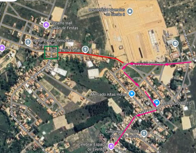 Veja no mapa abaixo que o ônibus não atenderá a linha vermelha, por não possuir alternativas de manobras segura. Durante esse período, o mesmo seguirá as setas rosas.