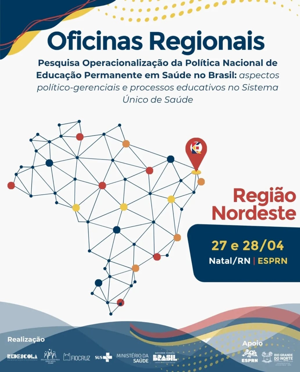 A Rede Brasileira de Escolas de Saúde Pública (RedEscola) concluiu o ciclo nacional de Oficinas Regionais da pesquisa “Operacionalização da Política Nacional de Educação Permanente em Saúde no Brasil: aspectos político-gerenciais e processos educativos no Sistema Único de Saúde (SUS)”. O encontro reuniu representantes de toda a região Nordeste e foi realizado na Escola de Saúde Pública do Rio Grande do Norte (ESPRN), em Natal, na capital do Estado, entre os dias 27 e 28 de abril. O município de Vitória da Conquista está entre os destaques da pesquisa, selecionado como campo de estudo na Bahia ao lado da capital Salvador. A escolha reforça o reconhecimento das experiências desenvolvidas no município na área de Educação Permanente em Saúde.