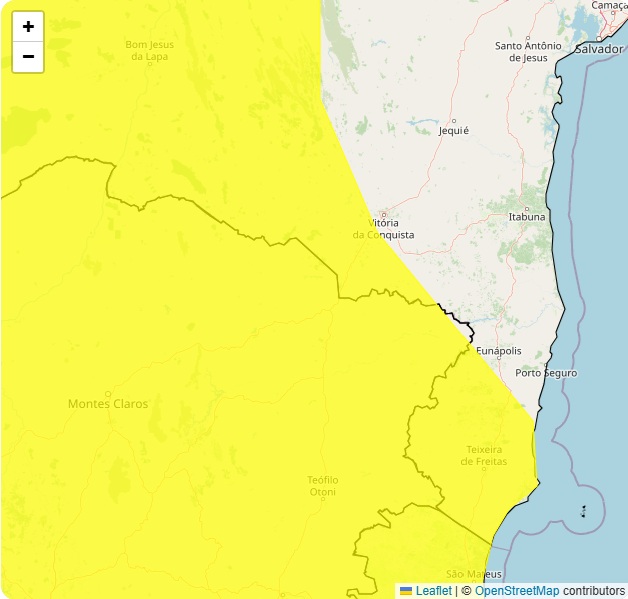 O Instituto Nacional de Meteorologia (Inmet) emitiu um alerta amarelo (perigo potencial) para Vitória da Conquista, em razão da previsão de chuvas intensas acompanhadas de ventos moderados. O aviso teve início às 9h24 desta terça-feira (4) e segue válido até as 10h de sábado (7). Apesar da classificação, o alerta aponta baixo risco para ocorrências.