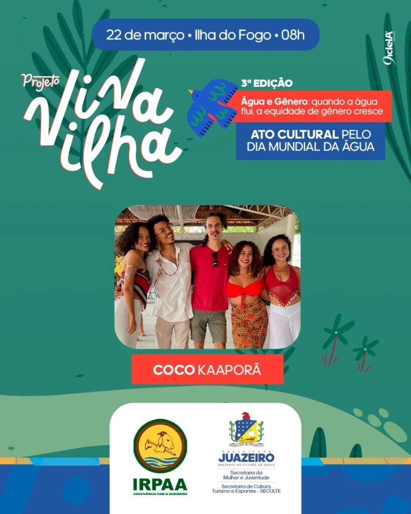 A Prefeitura de Juazeiro, por meio da Secretaria da Mulher e Juventude (SMJ) e da Secretaria de Cultura, Turismo e Esportes (Seculte), realiza neste domingo (22), a partir das 8h, na Ilha do Fogo, a 3ª edição do projeto Viva Ilha, em alusão ao Dia Mundial da Água e como parte da programação do Março Mulher.